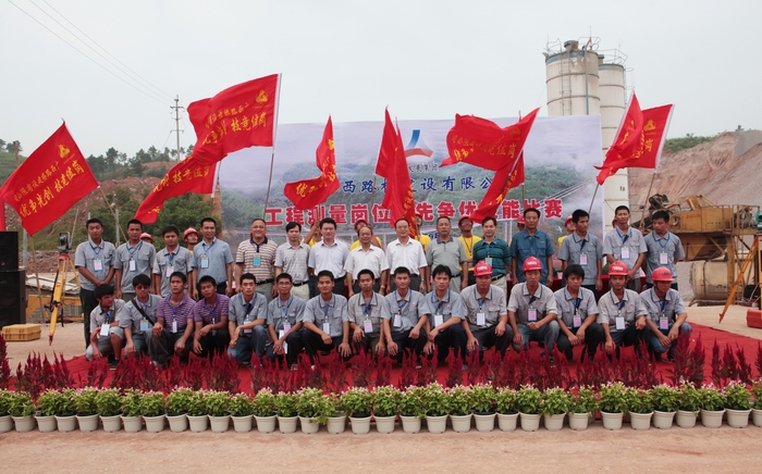 9月2日,廣西路橋建設(shè)有限公司在六欽1標(biāo)舉辦工程測(cè)量崗位創(chuàng)先爭(zhēng)優(yōu)技能比賽。廣西交通工會(huì)、海員工會(huì)主席黎建華,自治區(qū)交通運(yùn)輸廳直屬機(jī)關(guān)黨委專職副書記羅華芝,集團(tuán),公司黨委副書記張友坐等領(lǐng)導(dǎo)出席比賽開幕儀式并講話。