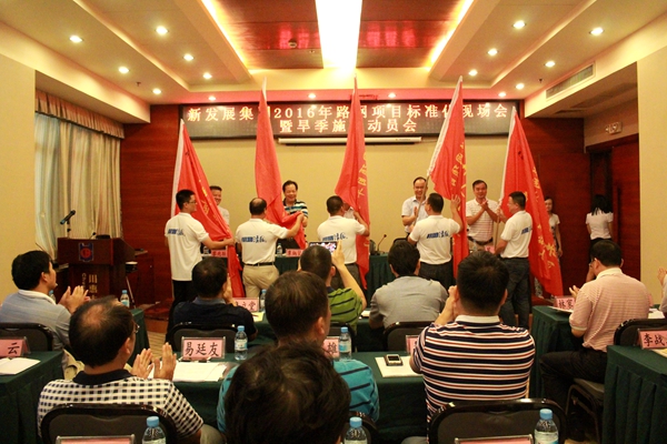 會上,集團領導還給“旱季施工青年突擊隊”授旗,各參建單位代表作了旱季施工表態(tài)發(fā)言。