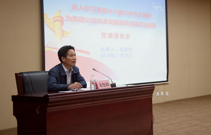 會上,集團公司黨委書記、董事長朱堅和做了題為《深入學習貫徹黨的十八屆六中全會精神為集團公司改革發展提供堅強政治保障》的黨課報告,從六中全會的重要意義、堅定不移推進全面從嚴治黨、全面加強規范黨內政治生活、全面落實黨內監督責任、突出抓好領導干部特別是高級干部等五大方面跟大家一起,全面、深入地學習了黨的十八屆六中全會精神。其中,對全會通過的《關于新形勢下黨內政治生活的若干準則》、《中國共產黨黨內監督條例》的基本精神、基本內容、基本要求進行了系統深入學習。