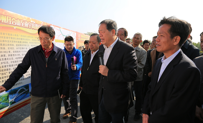 在柳州經(jīng)合山至南寧高速公路(簡稱新柳南高速公路)開工現(xiàn)場會(huì)主會(huì)場上,集團(tuán)公司黨委書記、董事長朱堅(jiān)和向自治區(qū)人民政府副主席陳剛、自治區(qū)交通運(yùn)輸廳副廳長梁毅等與會(huì)領(lǐng)導(dǎo)介紹了新柳南高速公路項(xiàng)目情況,以及集團(tuán)公司目前承建的自治區(qū)重大建設(shè)項(xiàng)目鐘山至來賓、來賓至巴馬、融水至河池等3個(gè)縣縣通高速公路項(xiàng)目建設(shè)情況,朱堅(jiān)和表示,集團(tuán)公司致力于成為自治區(qū)黨委、政府最可信賴的交通基礎(chǔ)設(shè)施投資運(yùn)營力量,全力以赴完成各重大項(xiàng)目建設(shè)任務(wù)。