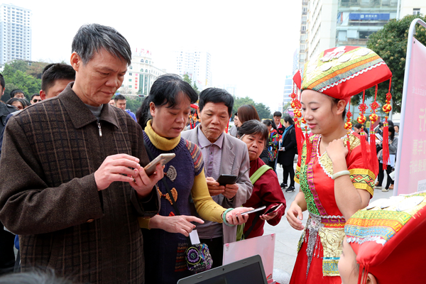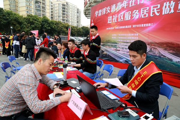 身著統(tǒng)一服裝,肩披綬帶、胸扣團徽的ETC推廣青年突擊隊員向過往的行人宣傳ETC的相關(guān)知識,耐心解答車主朋友們的疑問,并現(xiàn)場演示ETC八桂行卡的安裝過程,使廣大社區(qū)市民對ETC有了一個初步的認識。6名身著靚麗壯族服飾瞬間吸引住了往來市民的眼光,紛紛前來咨詢業(yè)務(wù)?;顒悠陂g,一卡通公司客服人員熱情地向社區(qū)居民發(fā)放了100張“桂民卡·體驗卡”,亦有不少市民被桂民卡精美的版面設(shè)計和強大的互聯(lián)互通功能所吸引,紛紛在現(xiàn)場辦理購卡及充值業(yè)務(wù)。票通公司客服人員則向社區(qū)居民推介了廣西人自己的道路客運網(wǎng)絡(luò)售票平臺——“桂客行”,耐心地向市民解析平臺功能、覆蓋范圍等,并協(xié)助市民下載“桂客行”手機APP。