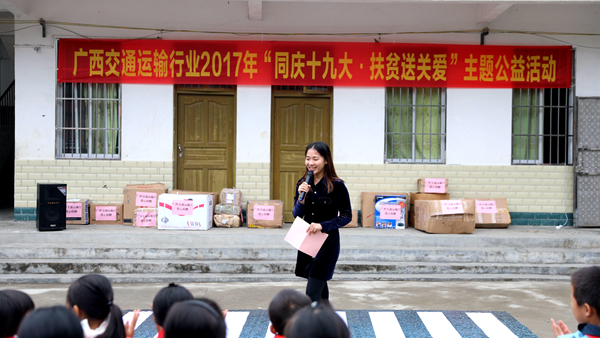 11月10日,集團(tuán)公司團(tuán)委組織青年團(tuán)干赴羅城縣東門鎮(zhèn)德音村小學(xué)參加共青團(tuán)廣西壯族自治區(qū)交通運(yùn)輸廳委員會(huì)組織的廣西交通運(yùn)輸行業(yè)2017年“同慶十九大•扶貧送關(guān)愛”主題公益活動(dòng)。
