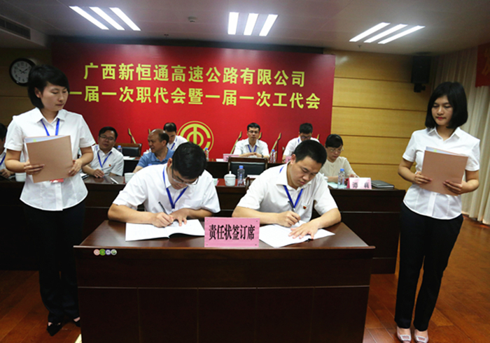 4月4日上午,新恒通公司一屆一次職代會暨一屆一次工代會勝利召開。會議全面貫徹落實黨的十九大及全國、全區交通工作會議和集團公司2018年工作會議精神,全面總結公司成立三年來的工作,明確和部署2018年各項重點工作,共謀公司發展大計,為奮力開創新時代“縣縣通”高速公路建設事業新局面而努力奮斗。集團公司領導出席會議并發表講話,集團公司派駐監事會成員、41名正式代表、3名列席代表參加會議。公司黨委副書記、工會主席梁波主持會議。
